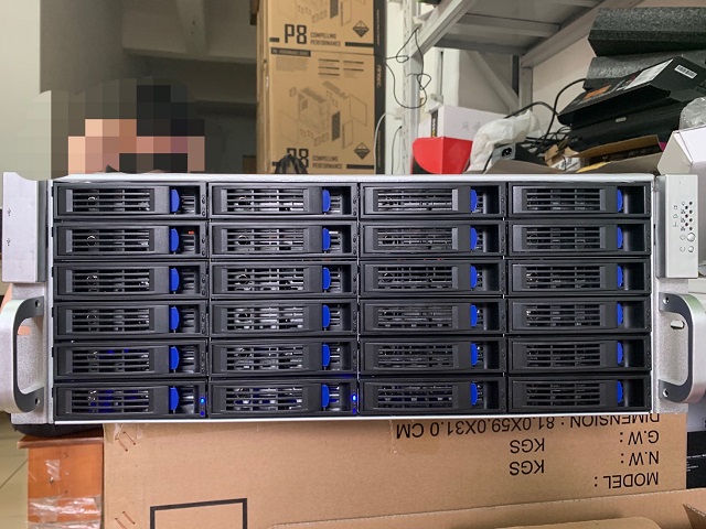 服务器一侧安装的24卡槽的硬盘柜 黄琼/摄