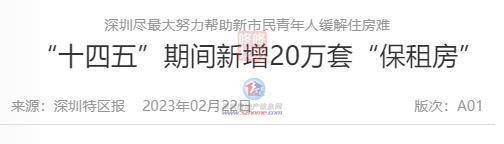 2月21日,《2023年深圳市政府工作报告全文》公布,工作报告表示,坚持房子是用来住的、不是用来炒的定位,着力稳地价、稳房价、稳预期,支持刚性和改善性住房需求,促进房地产市场平稳发展。供应居住用地3.3平方公里,新开工住房面积1300万平方米。出台保障性住房规划建设和公共租赁住房、保障性租赁住房、共有产权住房管理办法,完成保障性住房投资400亿元以上。加大保障性租赁住房建设力度,新开工建设60个项目,建设筹集16万套(间)。启动保障性住房“租购同权”试点工作。完成100个以上老旧小区改造。