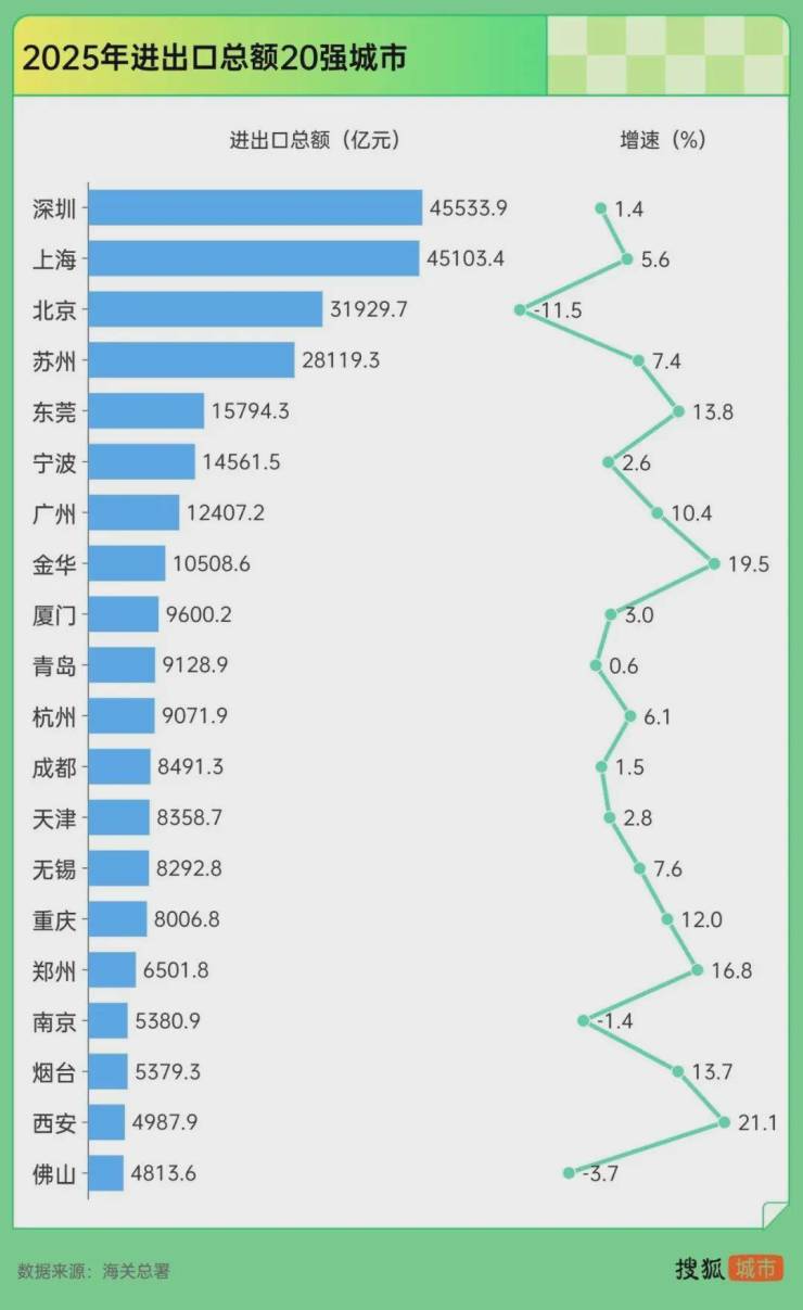 2025年全年深圳进出口总额达4.55万亿元人民币,同比增长1.4%,规模再创历史新高,继续位居内地城市首位。