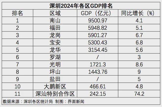 2024年深汕合作区GDP突破200亿元,GDP增速高达74.2%。