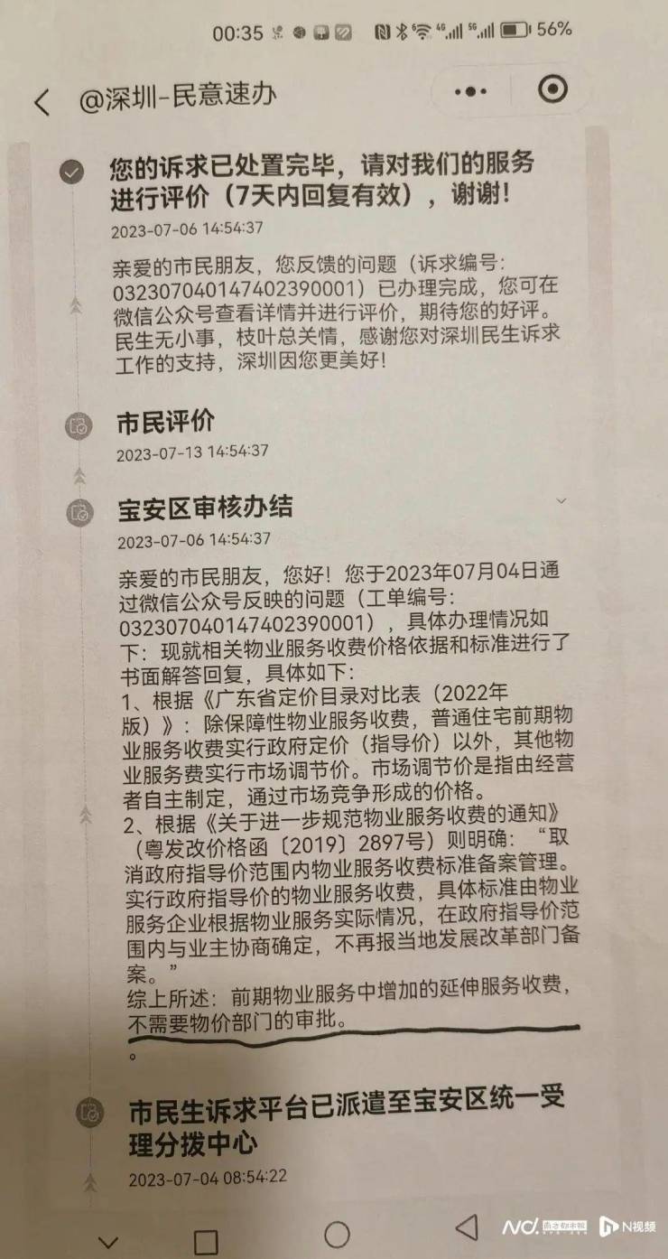 针对此事,小区有业主曾在“民意速办”平台上予以投诉,但平台回应称,前期物业服务中增加的延伸服务收费,不需要物价部门的审批。