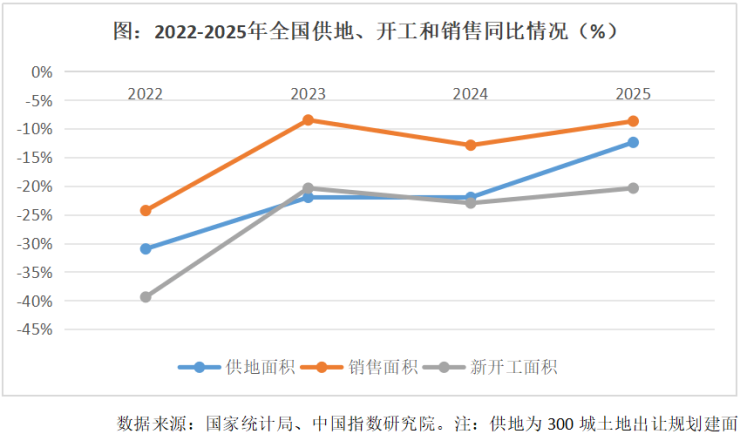 我算了一下,过去4年,新开工每年下滑25.8%、供地每年下滑21.9%、销售面积每年下滑13.6%。