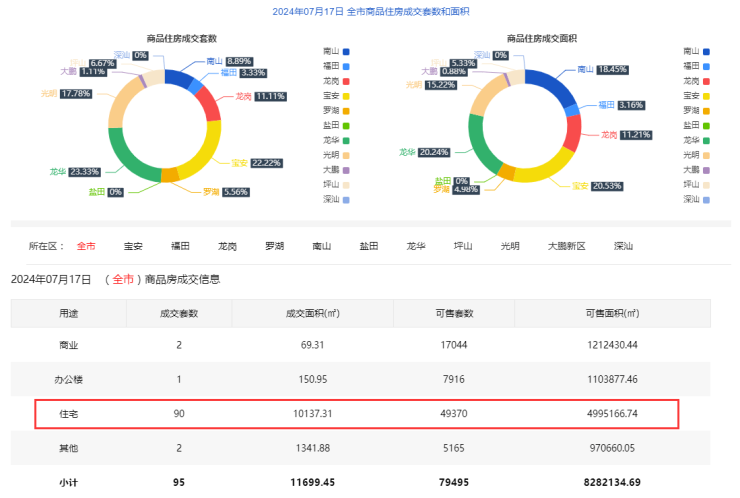 7月17日深圳新房住宅成交90套 二手房住宅成交184套