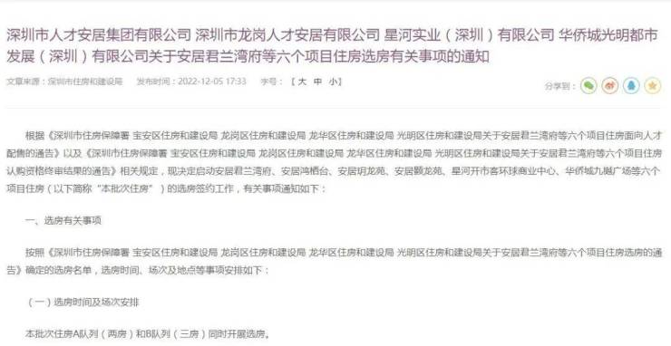 2022年11月9日,深圳首批可售人才住房上架,6盘4422套房源集中供应,自此拉开了深圳配售人才住房的序幕。