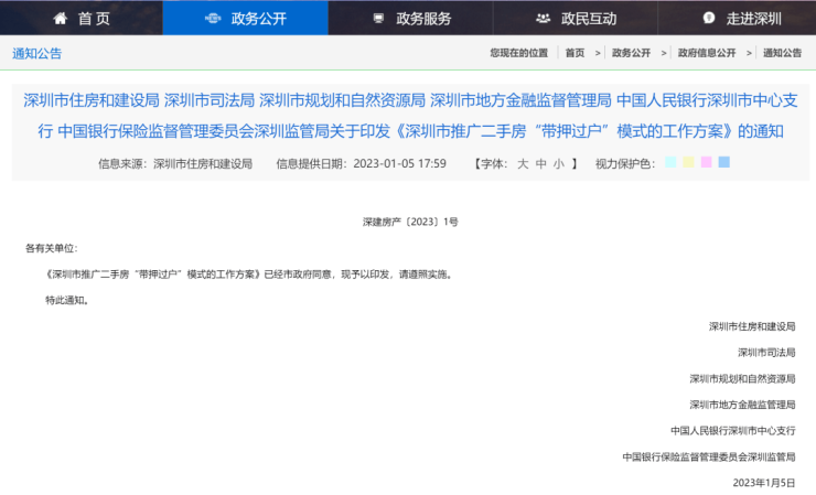 官宣方案虽然是在2023年年初发布(有多少人觉得不过春节就还没到新的一年...),不过储蓄银行深圳分行在2022年12月初便发布了相关“好消息”,宣布其正式开办“带押过户”房贷业务。早在9月,深圳出现了首例“免赎楼带押过户”的交易案例,不过该案例中交易标的是写字楼,而不是住宅。