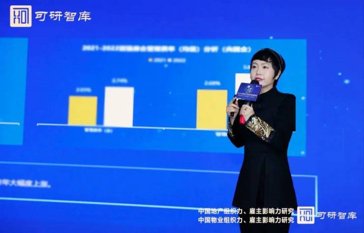 接着,贾春晖女士代表可研智库发布了2023年中国物业组织管理各项研究成果,并提出以下核心观点:
