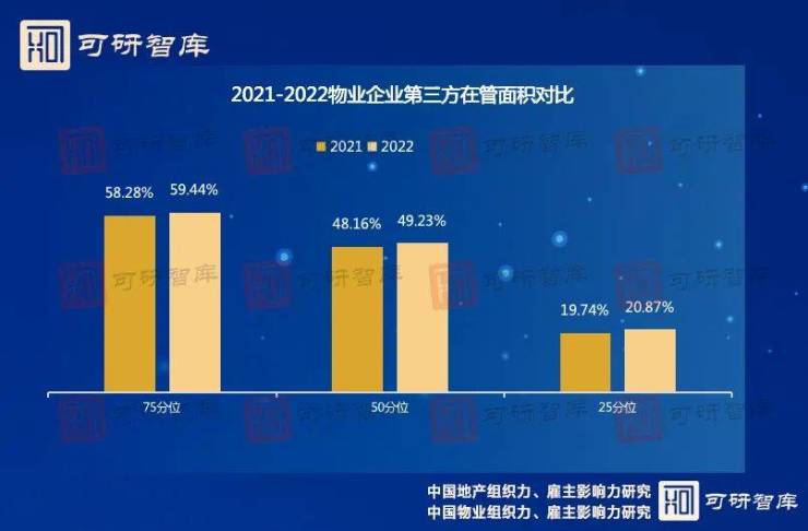 2022年物业企业第三方管面占比50分位值达到49%,已近在管面积的半数。