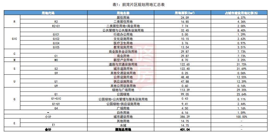 人口规模:前湾片区规划居住人口规模约4.7万人,规划就业人口规模约9.5万人。