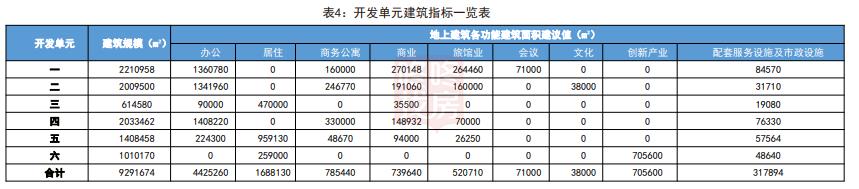 桂湾片区六个开发单元中,办公建筑总面积4425260㎡,居住建筑总面积1688130㎡,商务公寓建筑总面积785440㎡,商业建筑总面积739640㎡。