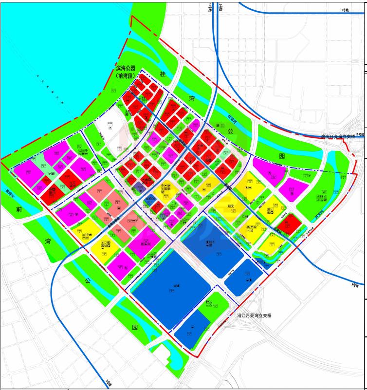 根据已有开发单元规划,前湾片区包含7个开发单元(开发单元七、八、九、十、十一、十二、十三)。