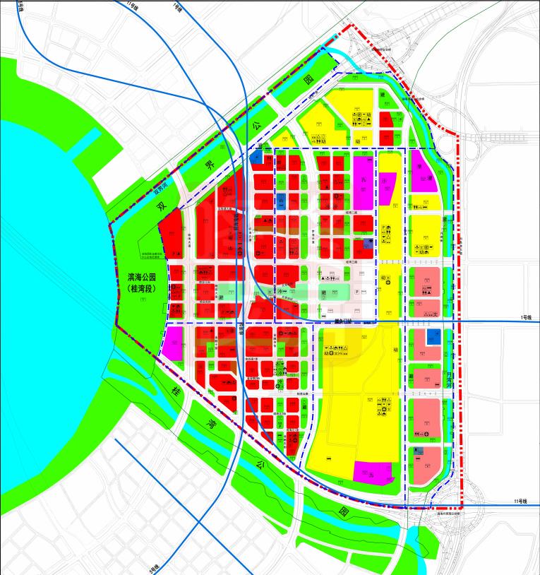 根据已有开发单元规划,桂湾片区包含6个开发单元(开发单元一、二、三、四、五、六)。