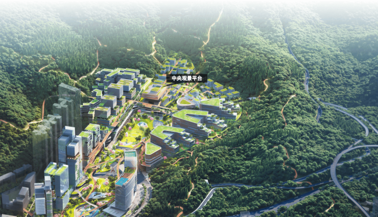 在空间规划与功能布局上,玉龙片区充分结合山地地形特色打造多维立体的城市空间,呈现“创智高地+生态绿谷+漫游公园”的独特形态。