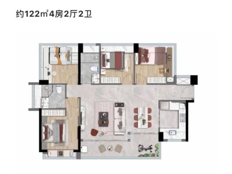 信义金御半山珑门将推出672套住宅房源,分别为建面约86㎡的3房1卫、95㎡的3房2卫、100-122㎡的4房2卫户型,2梯4户设计,毛坯交付,目前营销中心及样板房已经开放。