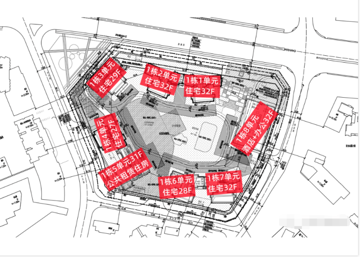 信义金御半山珑门占地面积约2.3万㎡,建筑面积约17.5万㎡,容积率5.89,共由1栋8个单元住宅+酒店办公组成,总高27-32层,其中1栋1/2/7单元商品房32F,1栋3单元商品房29F,1栋4单元商品房27F,1栋5单元公共租赁住房31F,1栋6单元公共租赁住房28F,1栋8单元酒店+办公32F。