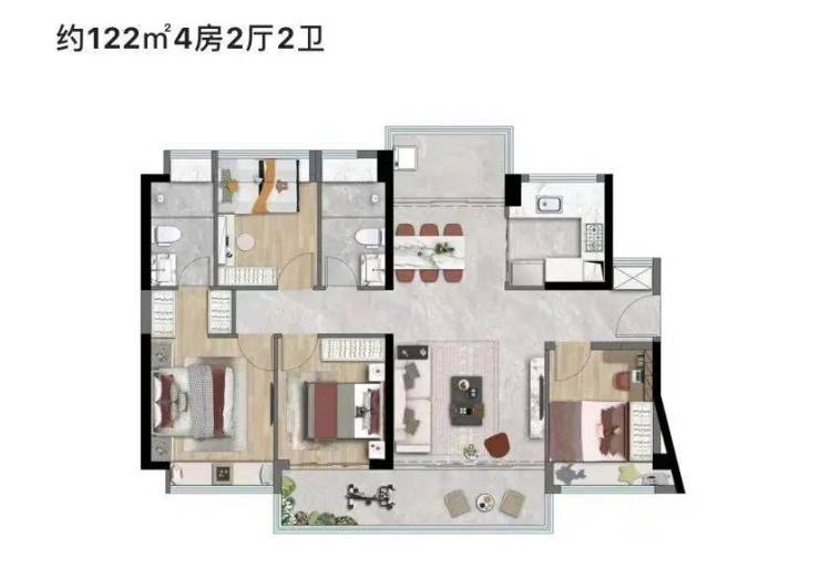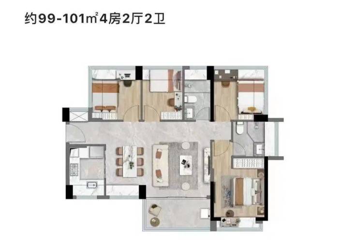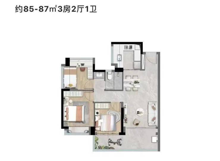 据悉项目的户型使用率“十分出色”,建面约74㎡能做到3房1卫,建面约89㎡的可以做到4房2房,项目5月1日正式开放样板间,户型图不公开,需现场看房才能了解