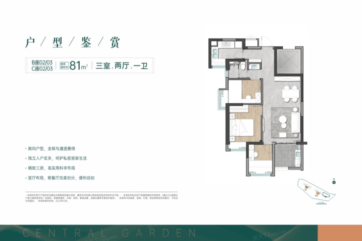 畔山铭苑小区规模小,户型产品也比较简单,仅有建面约81㎡、89㎡的两个户型可选。