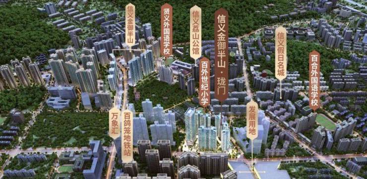 信义金御半山珑门为信义金御半山4期,项目位于惠康路与翔鸽路交汇处西南侧,北侧是万科红,东侧是在售的百合世纪广场,南侧毗邻百外世纪小学,临近地铁5/17(在建)号线百鸽笼站。