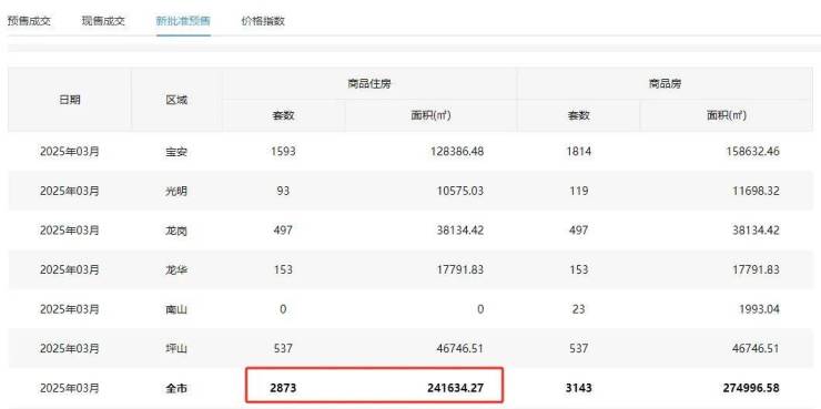 据住建局数据显示,截至3月24日,深圳可售新房面积仅为292.5万㎡,对比2月末的318.5万㎡,又清空了约26万㎡。