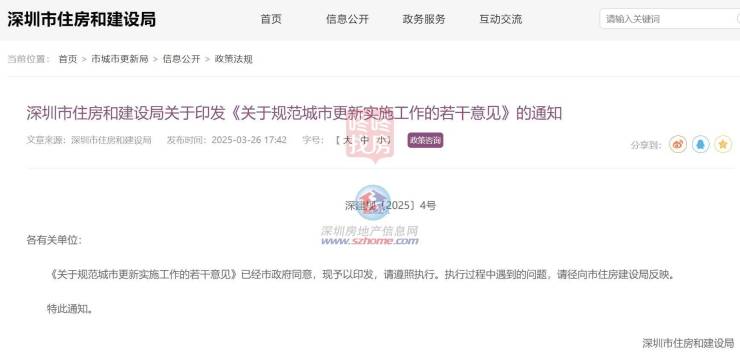 昨晚(3月26日),深圳市住房和建设局印发《关于规范城市更新实施工作的若干意见》的通知。此意见自2025年4月9日起施行,有效期3年。