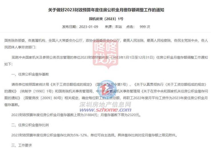 1月9日,中央国家机关住房资金管理中心官网发布了《关于做好2023财政预算年度住房公积金月缴存额调整工作的通知》。