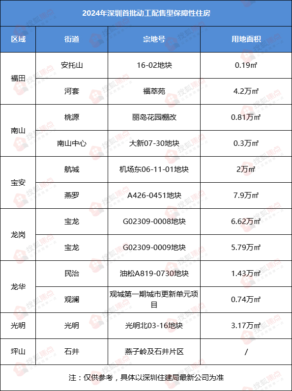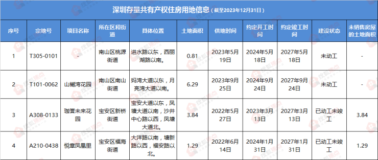本次清单中公开的共有产权房项目仅有4个,南山、宝安各两个项目,其中南山两个项目网传为调整成为配售型保障性住房,具体以官方最终公示为准。