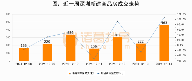 【深圳成交日报】12月14日新房成交463套、二手房167套;涨价房源19套