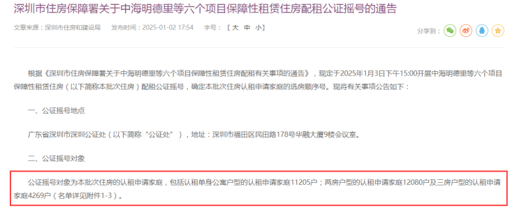 深圳第二批保租房认租倒计时,1月3日公证摇号,确定本批保租房认租申请家庭的选房顺序号。