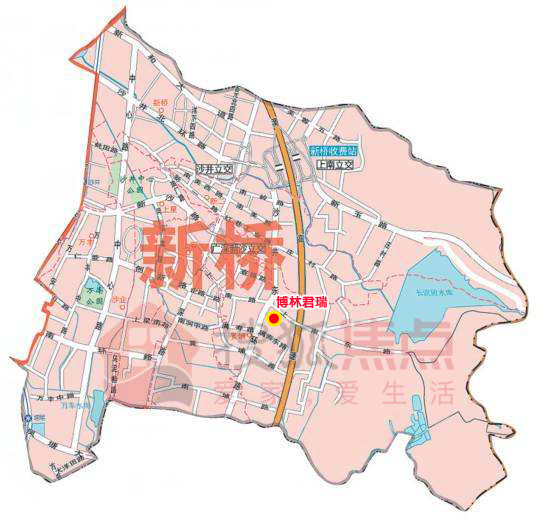博林君瑞位于宝安沙井南环路与上星路交汇处。经过街道划分后,沙井原有辖区内一分为二,成立沙井和新桥两个街道。博林君瑞在位置上处于“新桥街道”。