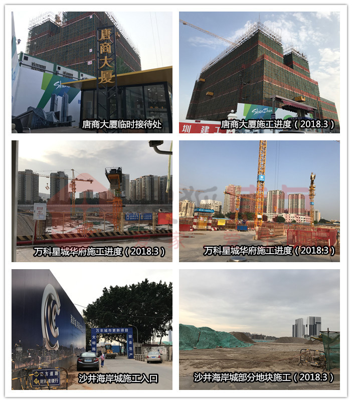 博林君瑞属于万丰沙井旧改项目,周边的旧改项目也比较多,如万科上星工业旧改(万科星城)、万丰南山及万丈埔工业区更新(沙井海岸城)、德普电子城更新、马安山锦胜工业区旧改(锦胜大厦)等等。目前博林天瑞周边已动工的项目有唐商大厦、万科星城,而备受瞩目的沙井海岸城项目进度最慢,目前大部分地块还在平整土地阶段。