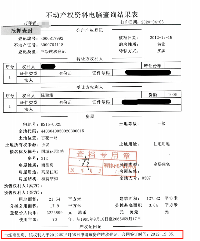 据产权单显示,该房产是前业主2012年12月通过转让买下。