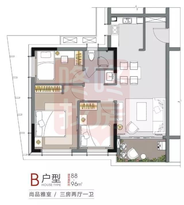 B户型 建筑面积约88-96㎡