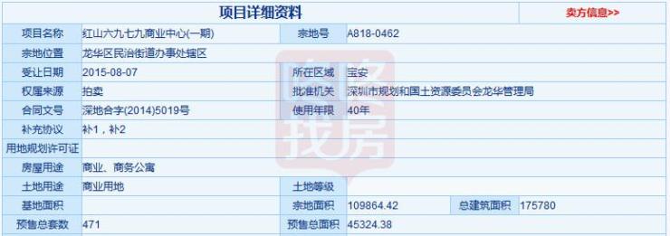 红山6979现已取得预售许可证,共备案471套单位,产品类型包括384套商务公寓和87套商业,备案均价分别约为57024元/平、149161元/平,产权年限40年,将于近期推出。