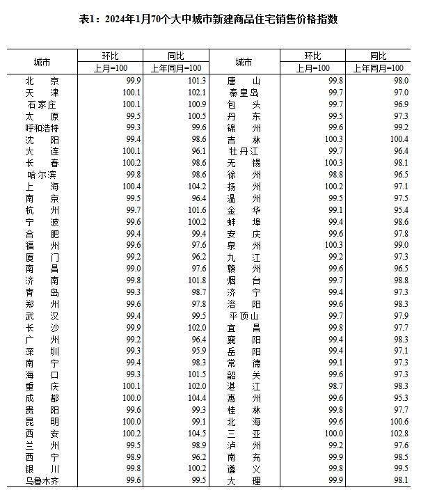 国家统计局:1月70个大中城市中商品住宅销售价格环比下降城市个数减少