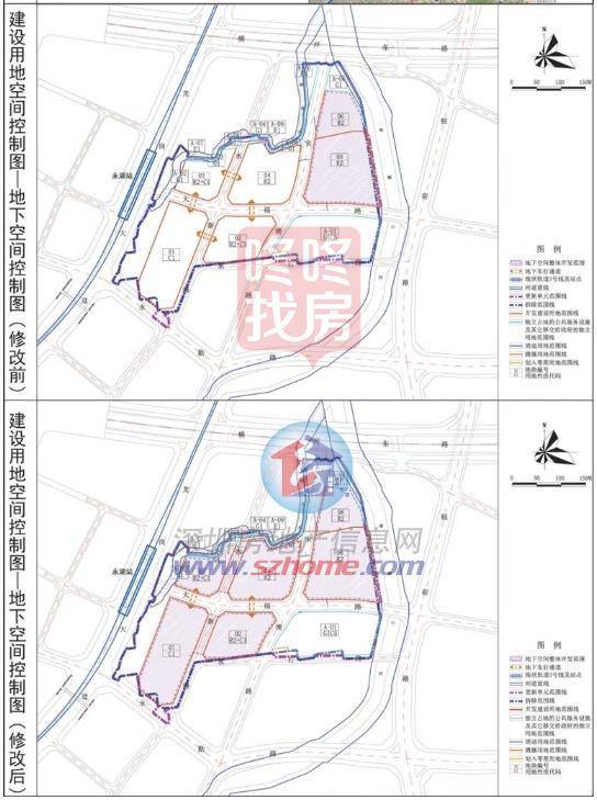 取消已批规划01与02、03与04地块之间设置穿越市政道路的地下车行通道。规划修改允许01地块、02地块与改造范围内水新路南段的市政道路地下空间进行整体开发;03地块、04地块与改造范围内水新路北段的市政道路地下空间进行整体开发,水新路地下空间开发需满足市政道路和地下市政管线建设及管理的相关要求。政府如因公共利益等需要对水新路及其地下空间建设时,水新路地下空间受让主体需无偿配合政府。