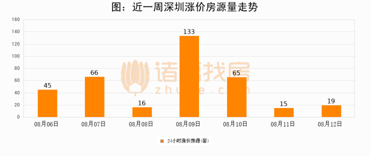 根据诸葛找房数据显示,深圳24小时涨价房源量为19套,较08月11日增加4套,环比上涨26.7%。与此同时,涨价房源占比小幅扩大,业主信心有所提升。