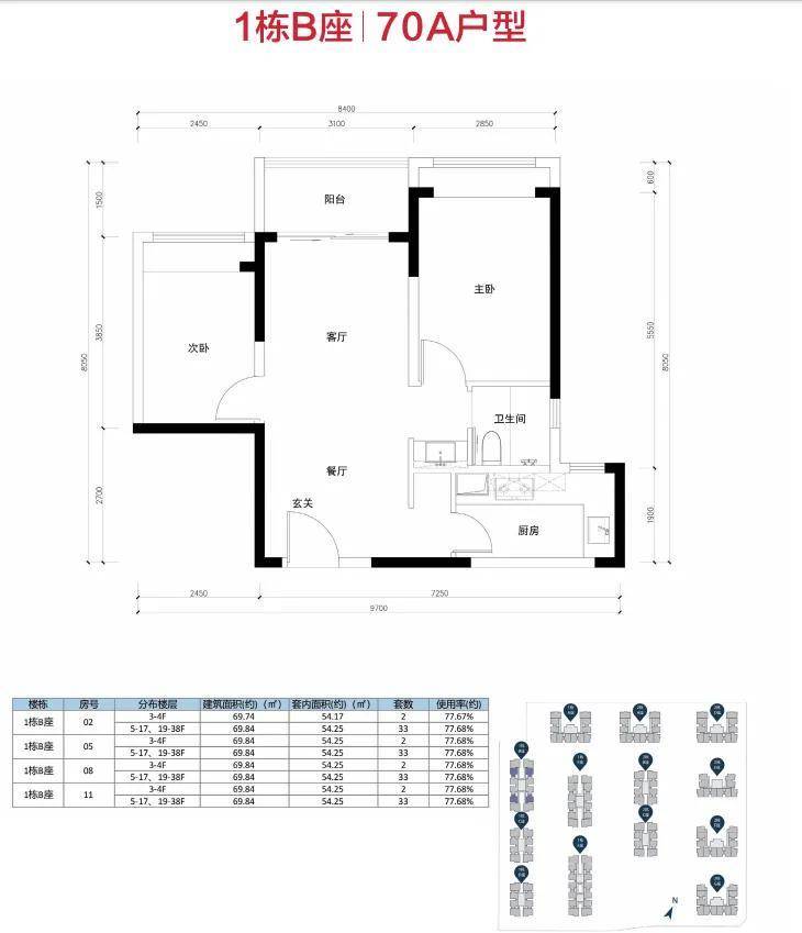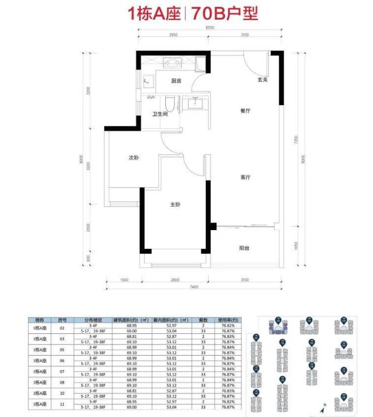 项目70㎡的户型主要有经典竖厅和双龙抱珠两种格局可选;90㎡则均为普通竖厅格局。部分户型图展示如下: