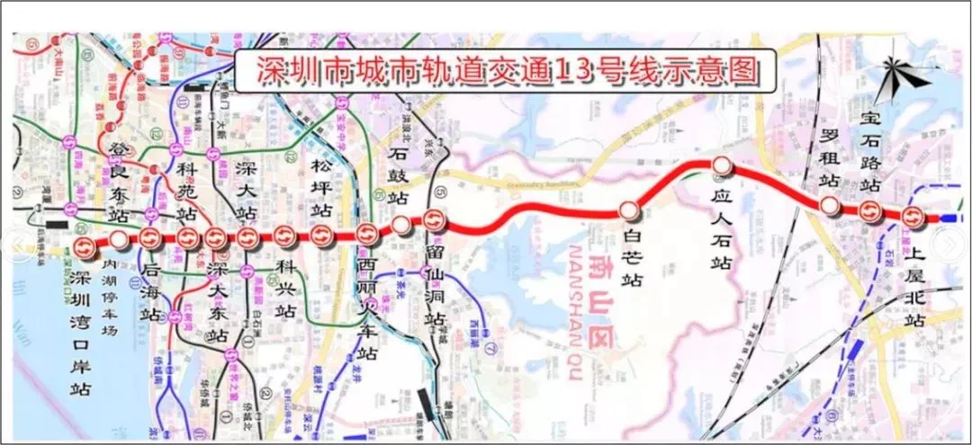 ▲13号线线路图目前,城市轨道交通13号线工程,深圳市城市轨道交通13号线二期(北延)工程,深圳市城市轨道交通13号线二期(南延)工程,列入《深圳市2020年重大项目计划》。