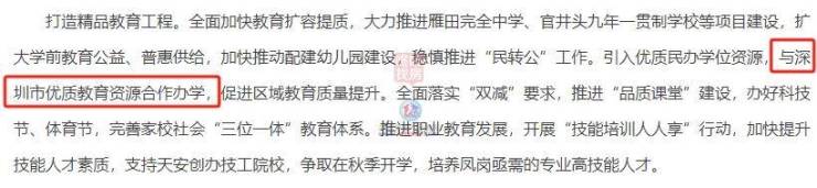 另外,凤岗将与深圳市优质教育资源合作办学。