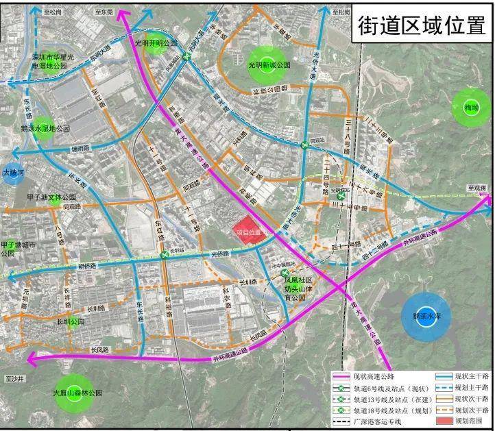 项目位于光明区凤凰街道,东临龙大高速、南临光侨路、西临塘家南路、北临塘家环村路。