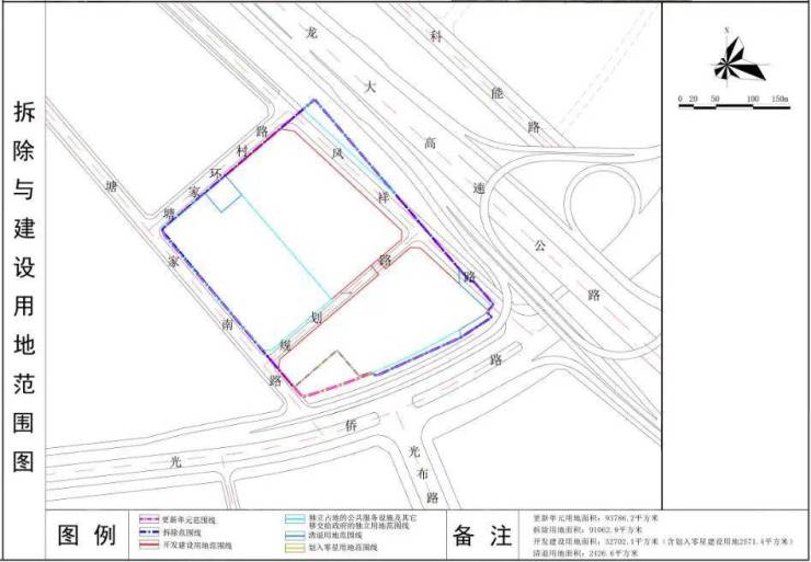 更新单元用地面积93786.2㎡,拆除用地面积91062.9㎡,开发建设用地面积52702.1㎡(含划入零星用地2571.4㎡),规划容积313910㎡。