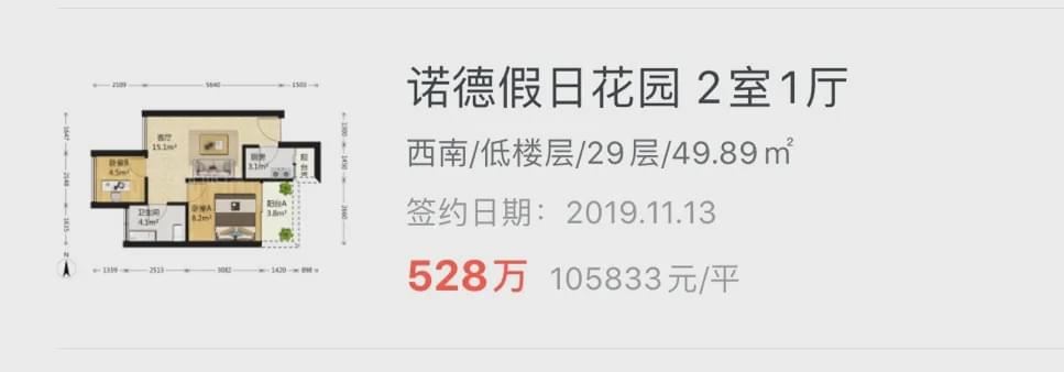 诺德假日花园是当之无愧的南山二手成交热盘,1年前,500万总价出头,是可以搞定一套南山实验9年制学区房的,虽然面积不大只有48㎡,但至少是2房。