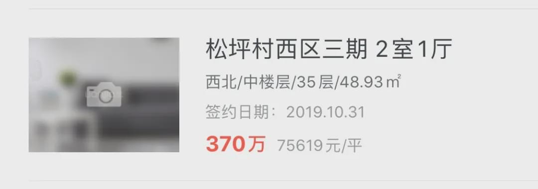 去年10月31日,松坪村三期西区,一套48㎡2房成交总价370万,单价7.6万/㎡。1年后的10月,同样是48㎡2房,成交总价已达511万,单价10.5万/㎡。
