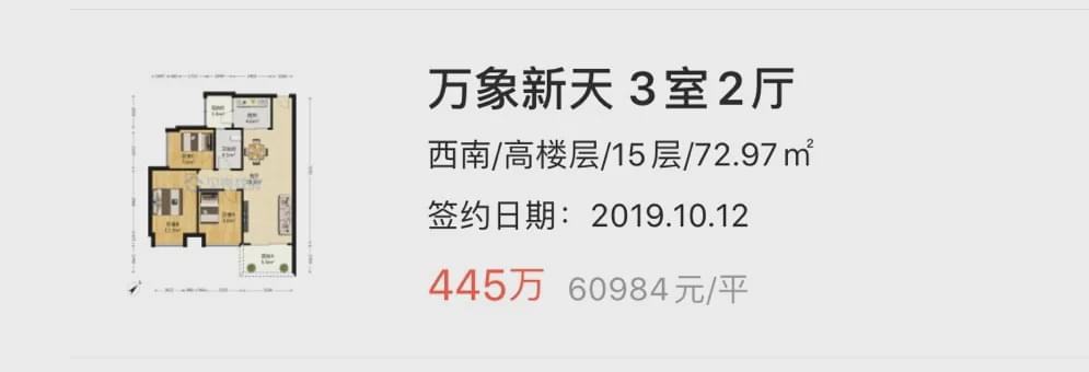 72㎡3房1年涨幅140万,单价涨2.1万/㎡
