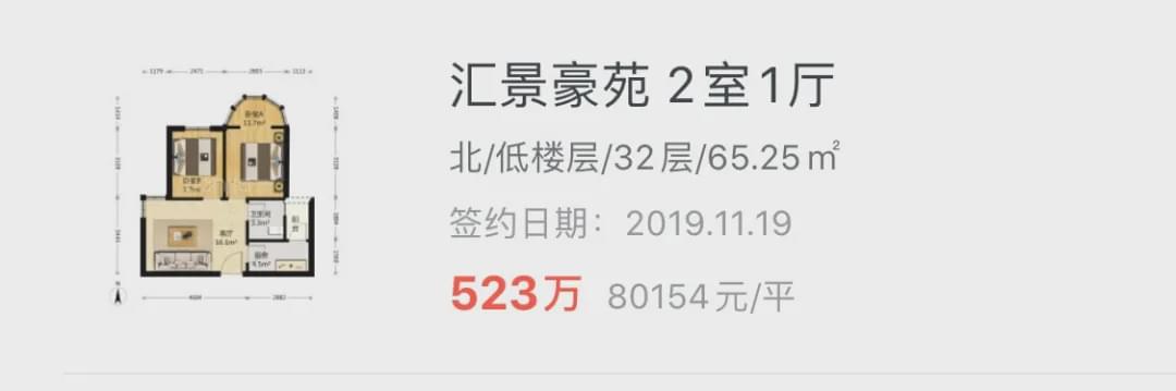 而现在,1年时间过去,同样是65㎡2房,成交价已达700万。