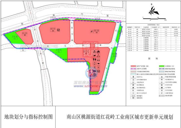 近日,深圳市南山区城市更新和土地整备局发布关于桃源街道红花岭工业南区更新单元(暂定名)03-01、02-02地块《建设工程规划许可证》及总平面图的公告。