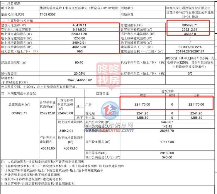 此次批复的红花岭工业南区02-02、03-01块,总建面超72万㎡,用地单位深圳市深汇通投资控股有限公司,建筑功能主要为、厂房、宿舍、商业等。