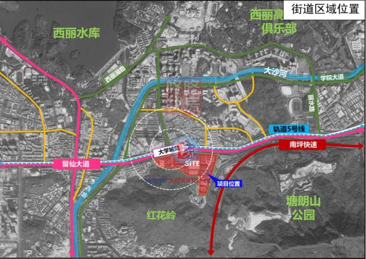 项目位于位于桃源街道,北邻大学城,南靠塘朗山,西邻大学城创客小镇,东侧紧靠平南铁路和南坪快速。
