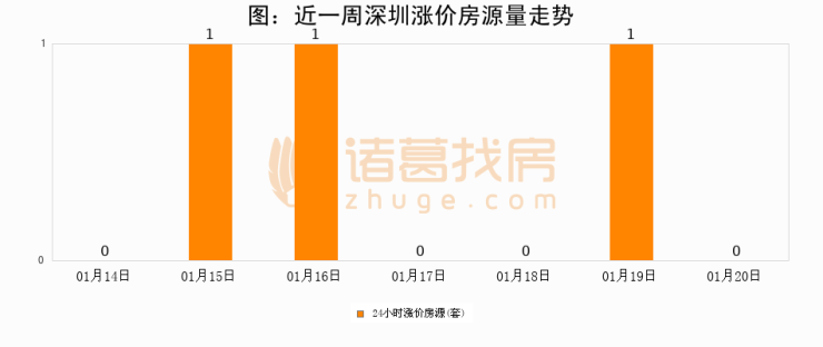 根据诸葛找房数据显示,深圳24小时涨价房源量为0套,较01月19日减少1套,环比下降100%。与此同时,涨价房源占比小幅回落,对于购房者来说是一个入市窗口期,购房者可抓住时机入市。