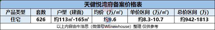 备案均价约9.6万/㎡,推626套住宅,天健悦湾府获批预售!