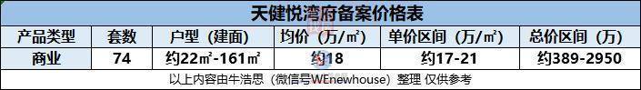 同时推售建面约22-161㎡商业产品(位于项目的1、2、3栋),备案均价约18/㎡,单价区间约17-21万/㎡,总价区间约389-2950万。